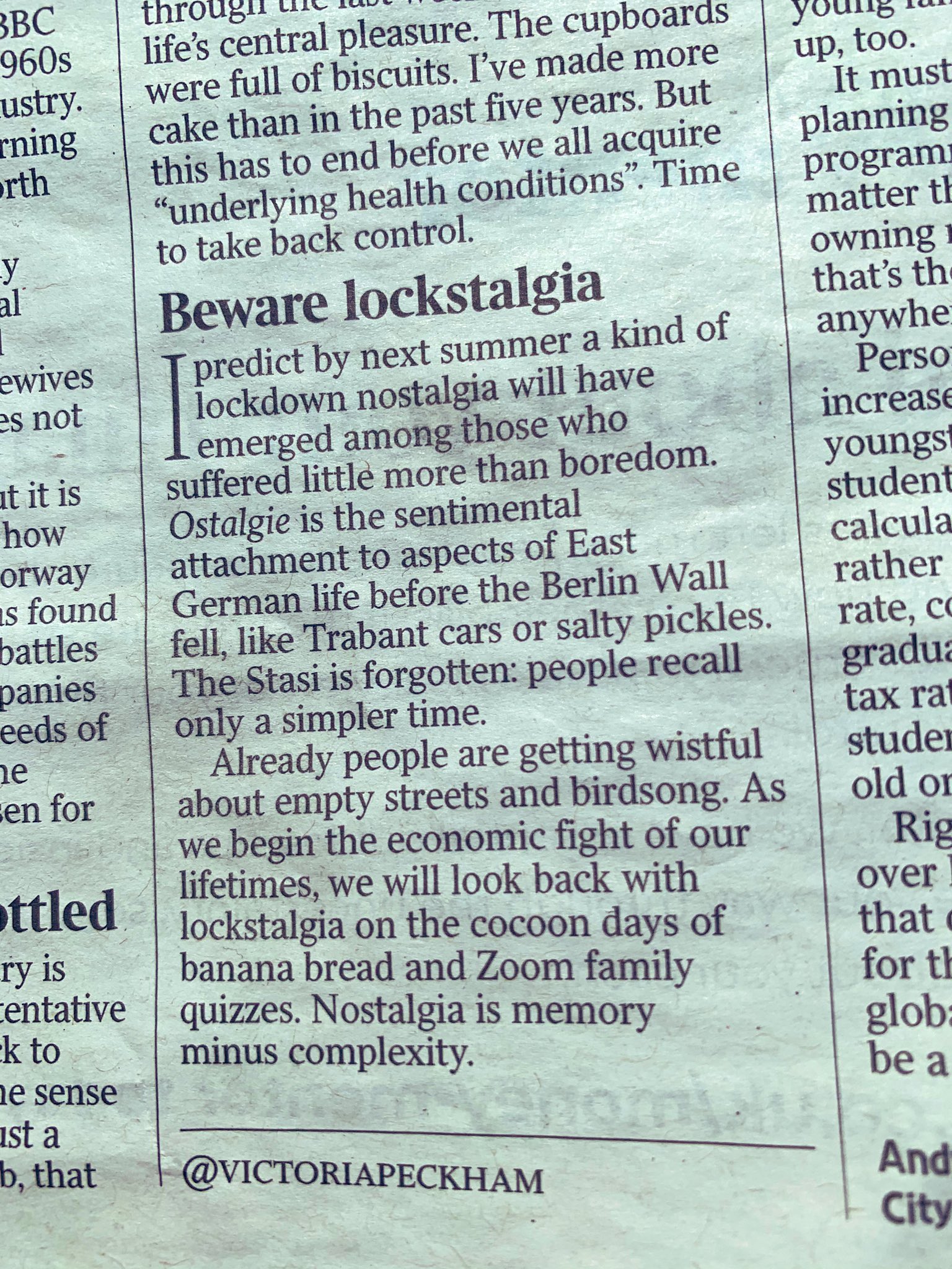 [the] things we did during lockdown happened in a set of very strange circumstances, and were partly driven by survival instincts. As we move forward, we need to consider how we adopt new things as the traditional rhythms of life resume…Above all, just as you may have entered lockdown with purpose, exit it with purpose too…If you do not, then you may start having feelings of ‘lockstalgia’, and start regretting that you did not keep doing the things that you not only found more efficient but preferred and actually enjoyed.